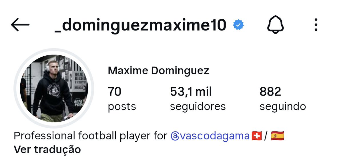 Maxime Domínguez altera bio e foto no Instagram: 'Jogador profissional de futebol do Vasco da Gama'