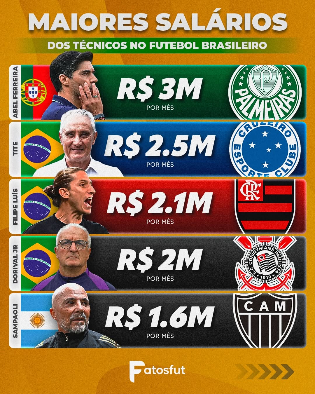 After some tense moments, Filipe Luís renewed his contract with Flamengo and became the third highest-paid coach in Brazil! We've brought you the Top 10 list. Did anyone surprise you?