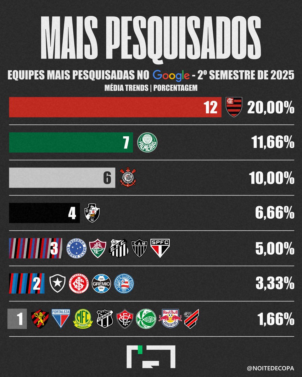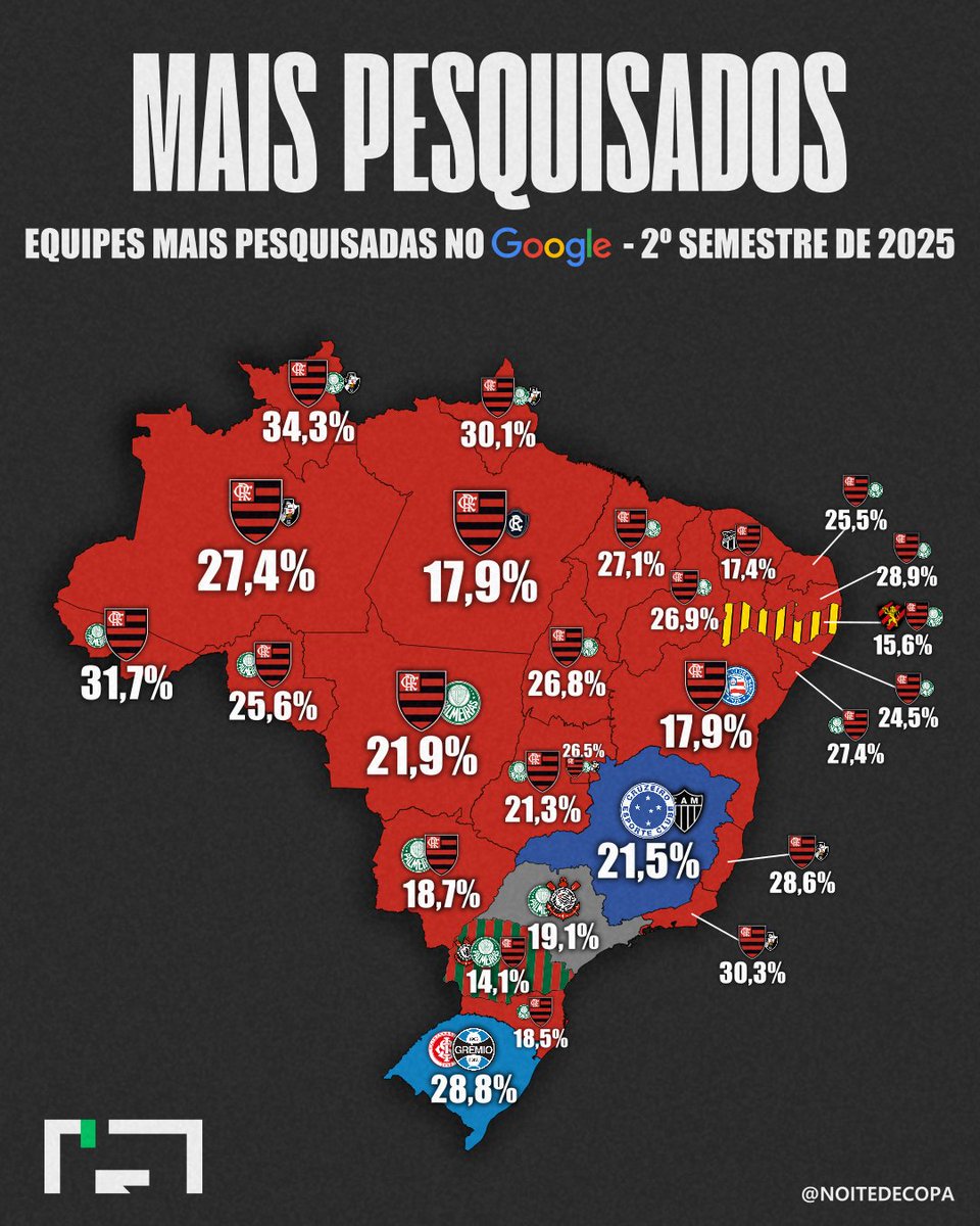 🌎🏆 TIMES MAIS PESQUISADOS DO BRASIL NO GOOGLE DURANTE O 2º SEMESTRE DE 2025
