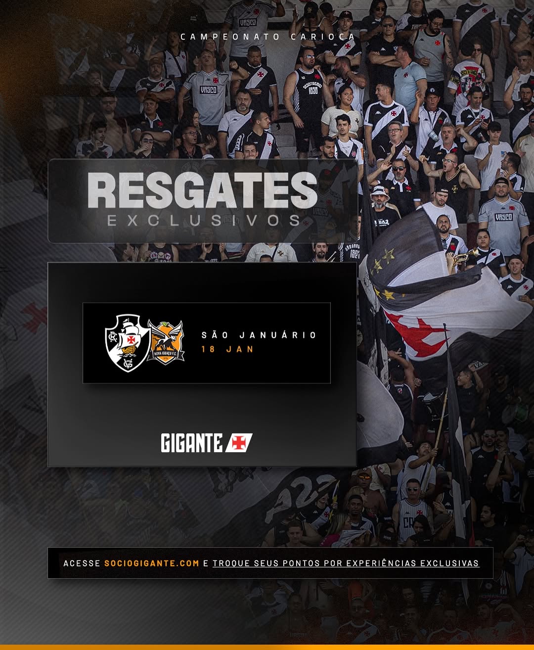 Domingo (18/01), o Vasco joga novamente em São Januário e, com isso, mais uma oportunidade de você viver momentos incríveis no Caldeirão!