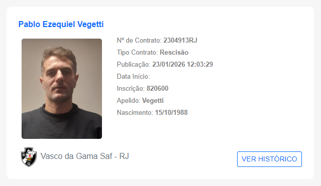 Rescisão de contrato do centroavante Pablo Vegetti com o @VascodaGama foi publicada no BID da CBF: