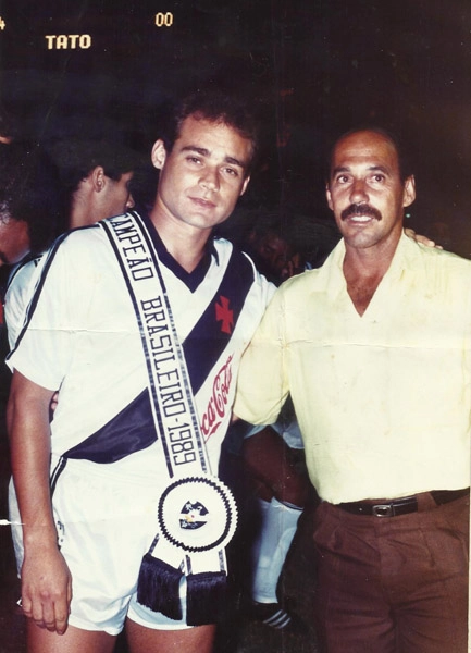 Tato com a faixa de campeão brasileiro pelo Vasco, em 1989, na conquista diante do São Paulo em pleno Morumbi (1 a 0 para os cariocas, gol de Sorato) |