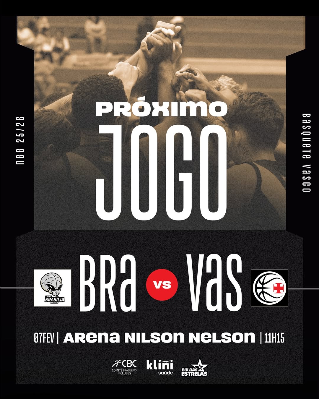 AMANHÃ é dia! 💢🏀 O Vasco da Gama entra em quadra às 11h15 para encarar o Brasília Basquete, na Arena Nilson Nelson, pelo NBB CAIXA 25/26.