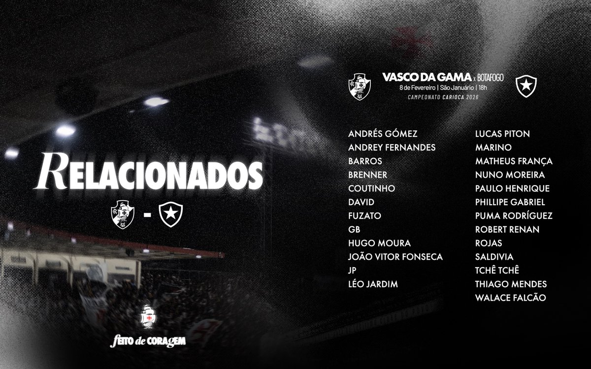 📝 Os relacionados para o clássico de hoje, contra o Botafogo, pelo Carioca!