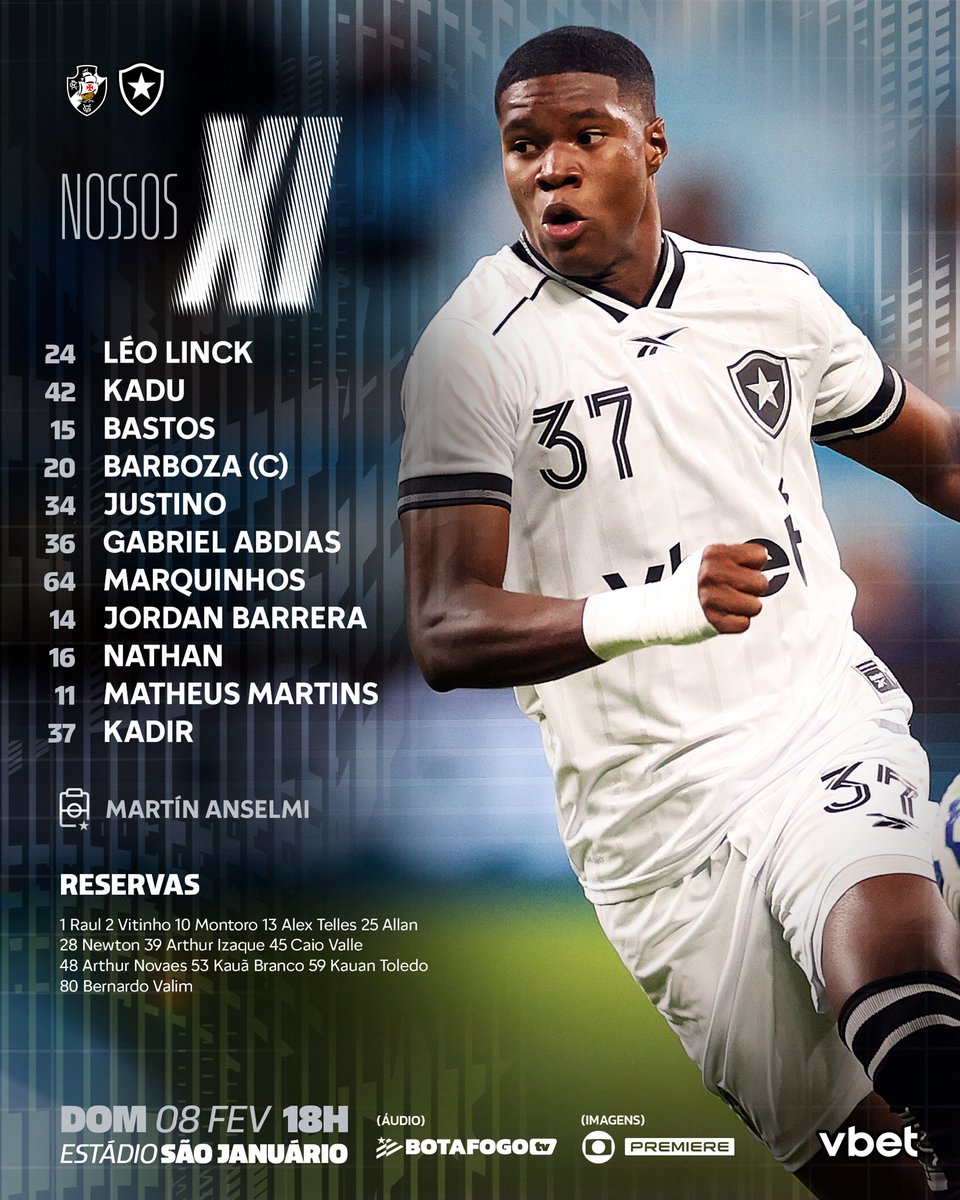O Glorioso Botafogo está definido para o clássico com o Vasco, pelo Carioca, em São Januário! PRA CIMA! 🔥💪🏽 #VamosBOTAFOGO