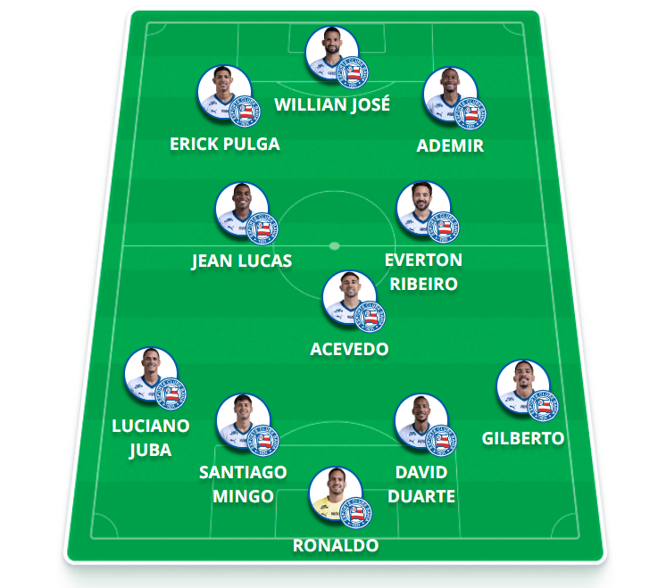 Provável escalação: Ronaldo; Gilberto, David Duarte, Ramos Mingo e Luciano Juba; Nicolás Acevedo, Everton Ribeiro e Jean Lucas; Ademir, Erick Pulga e Willian José.