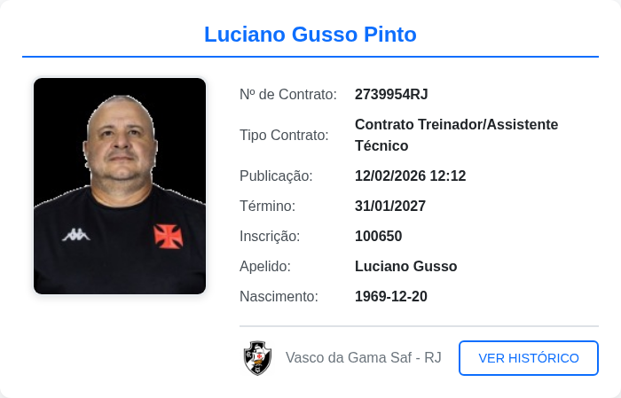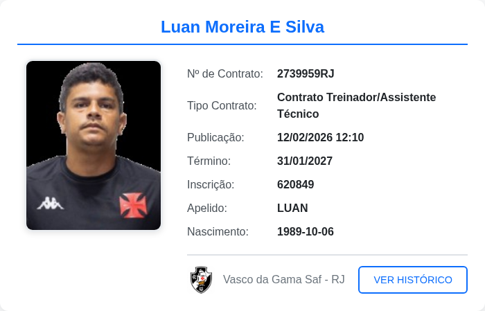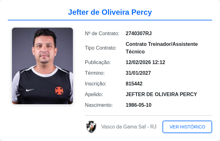 Tipo de contrato: Contrato Treinador/Assistente Técnico