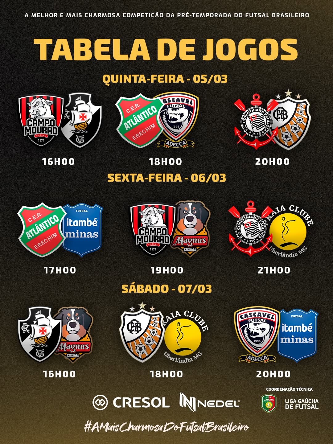 De 5 a 13 de março, Gramado será palco de grandes duelos entre os melhores clubes do Brasil. 🔥