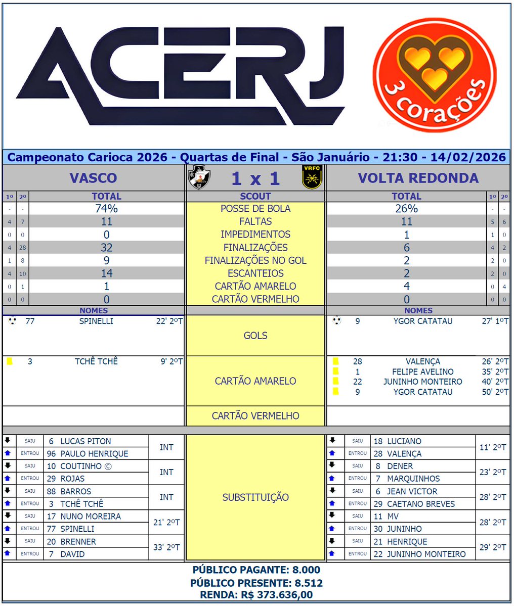 Scout Final de Vasco e Volta Redonda pelas quartas de final do Campeonato Carioca 2026 em São Januário #Acerjinforma #CariocaSuperbet2026 #VASxVRE #Vasco #VascodaGama #VoltaRedondaFC @Cariocao @VascodaGama @VoltacoFC
