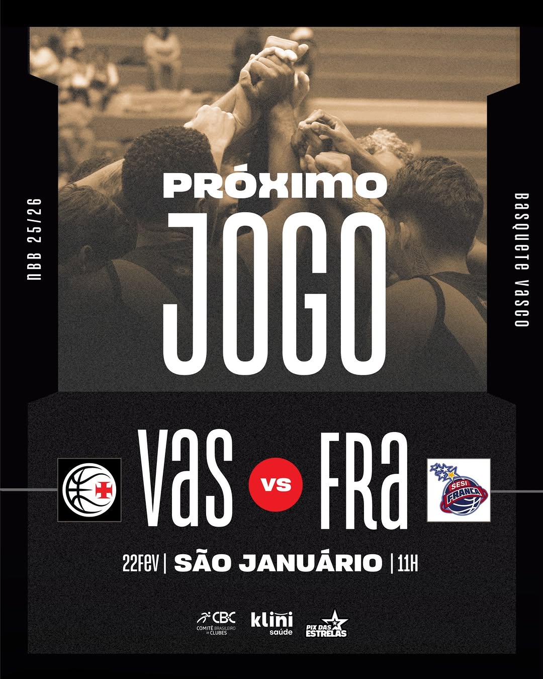 Basquete: Pelo NBB, Vasco enfrenta o Franca neste domingo às 11h em São Januário com Canal UOL e Youtube