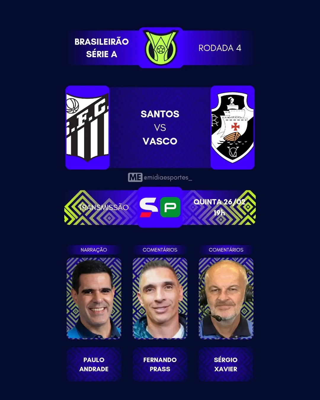 Confira os profissionais que trabalharão na transmissão de Santos x Vasco