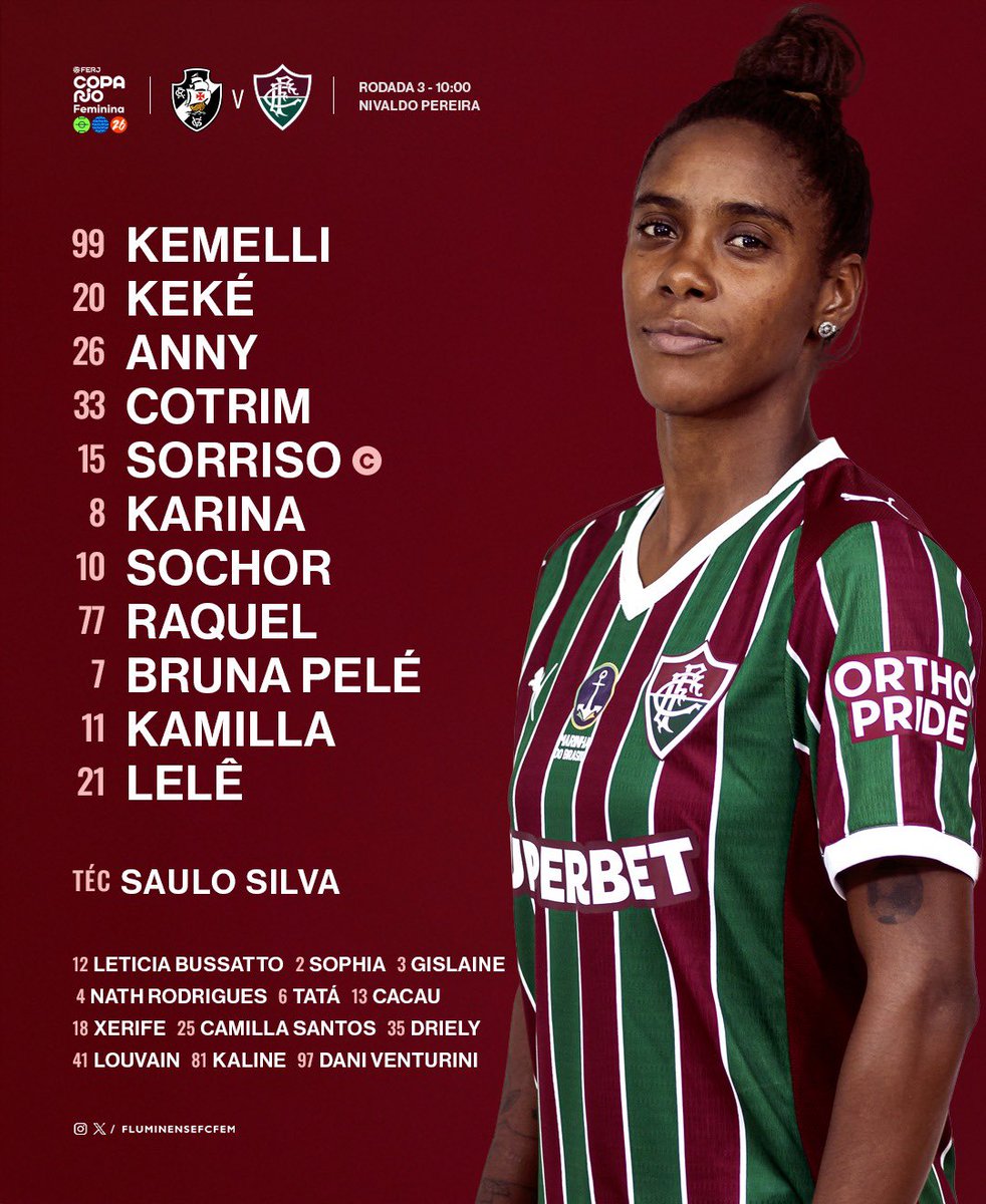 As #GuerreirasDoFluzão estão escaladas para a clássico contra o Vasco! VAMOS, TRICOLOR! 🇭🇺🇭🇺