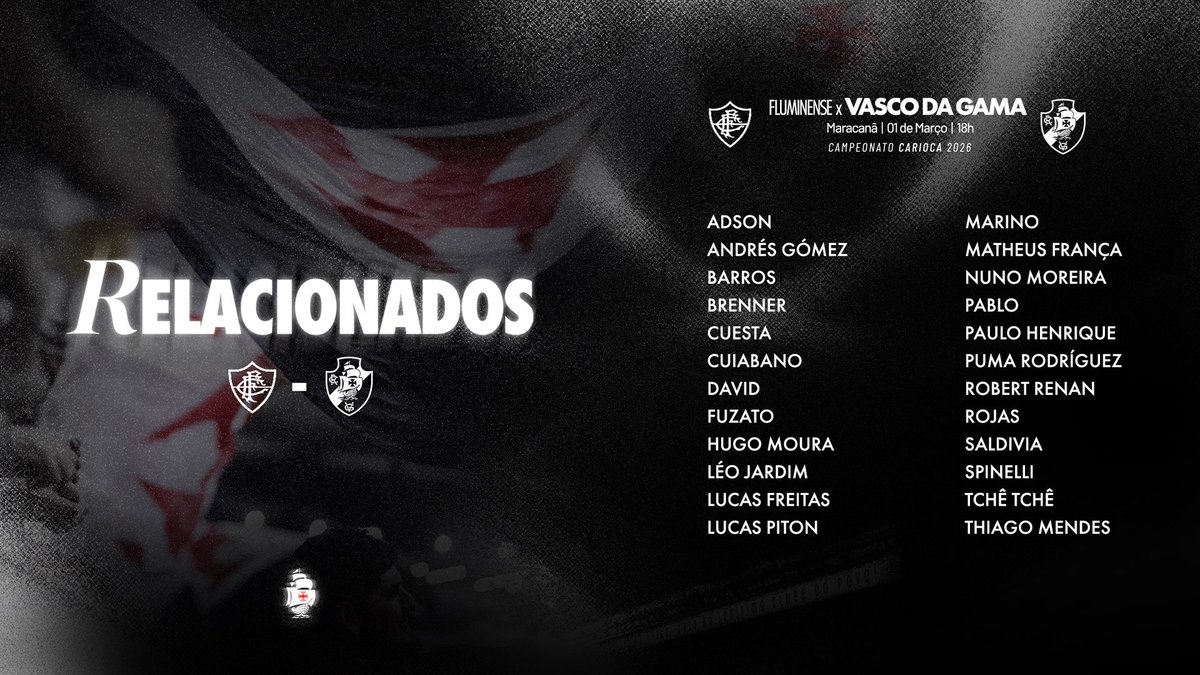 📋 Os relacionados para o clássico de hoje no Maracanã! 💢