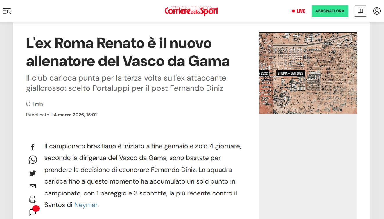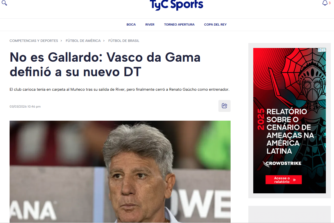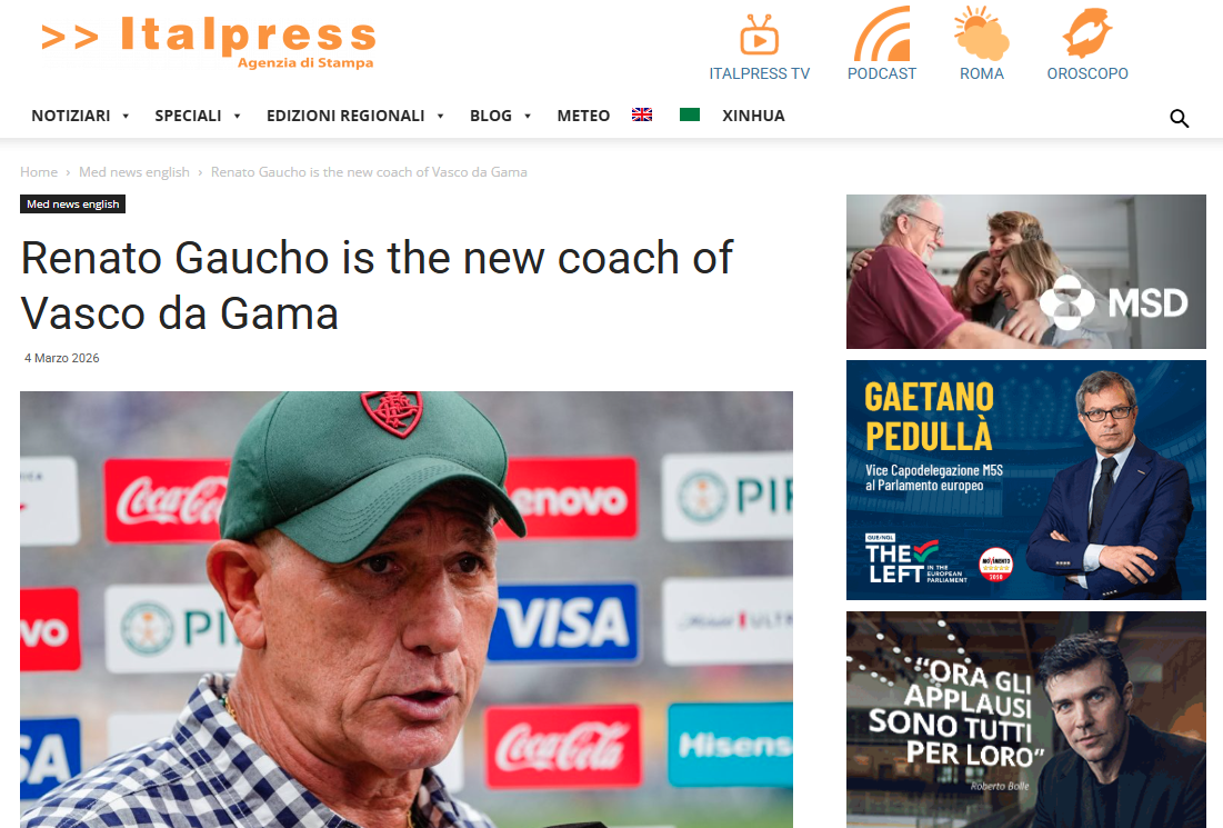 A contratação do treinador Renato Gaúcho pelo Vasco repercutiu na imprensa internacional. Veja alguns exemplos.