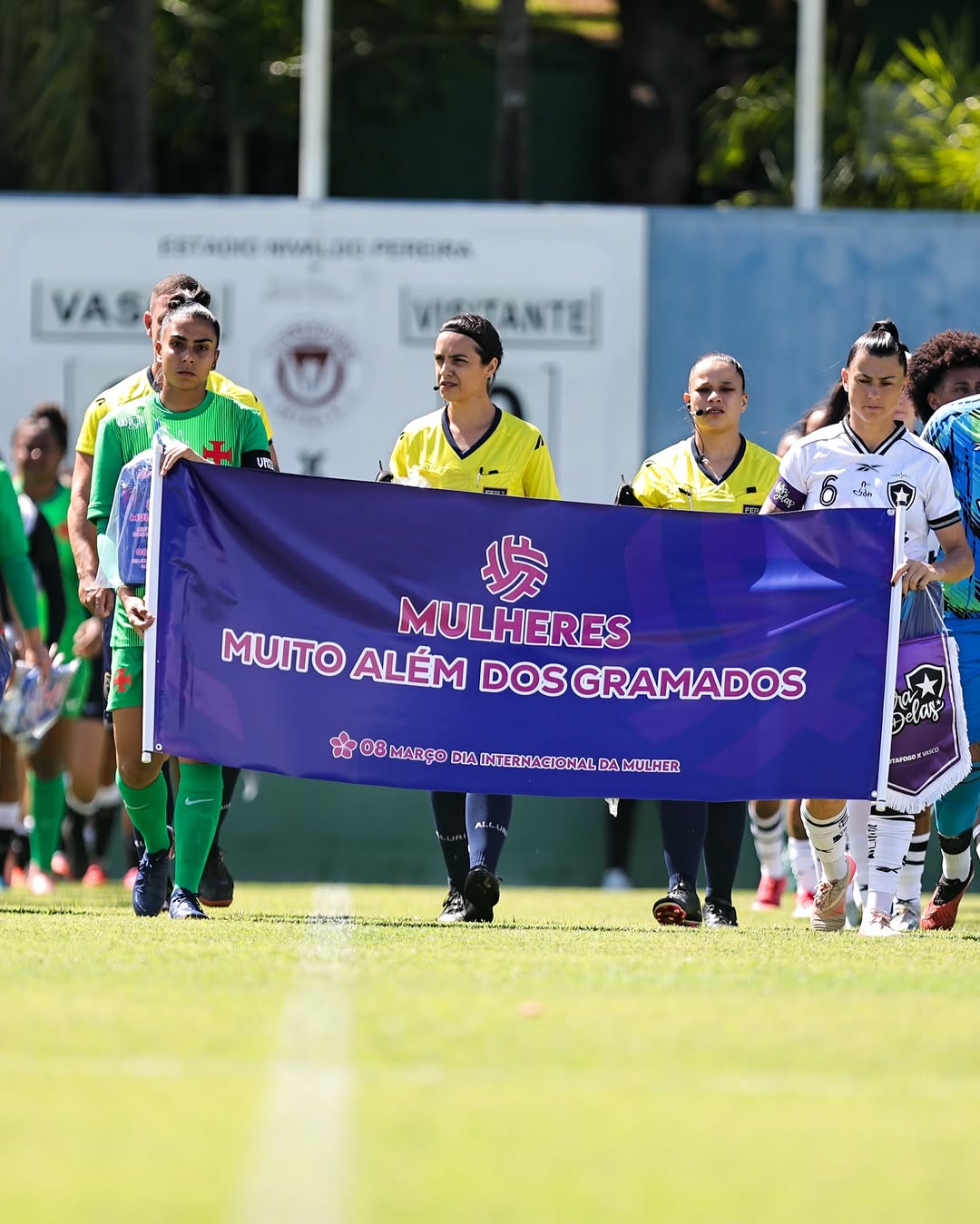 Feminino: Jogadoras de Vasco e Botafogo entraram em campo com faixa em homenagem 脿s mulhres; veja foto