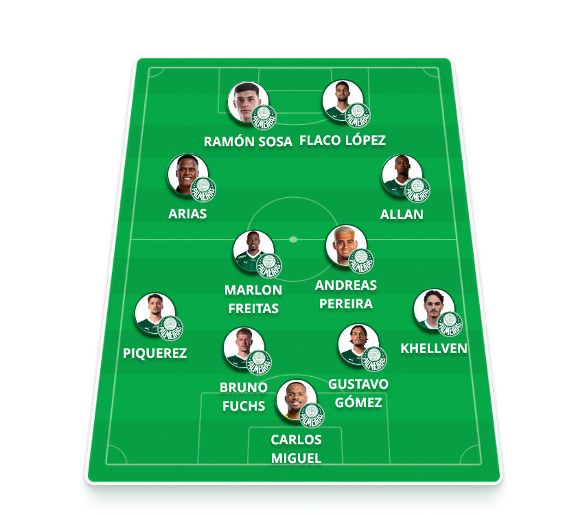 Provável escalação: Carlos Miguel; Khellven (Giay), Gustavo Gómez, Bruno Fuchs e Piquerez; Marlon Freitas (Martínez), Andreas Pereira, Arias e Allan (Felipe Anderson); Flaco López e Sosa.
