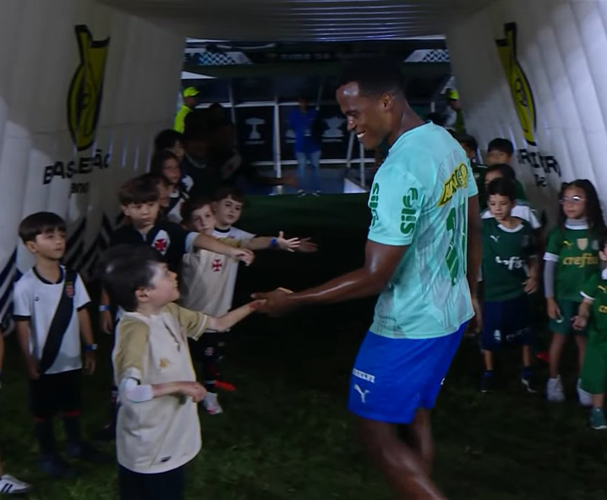Pequeno Gui conversou com Jhon Árias, do Palmeiras, antes do jogo; veja foto
