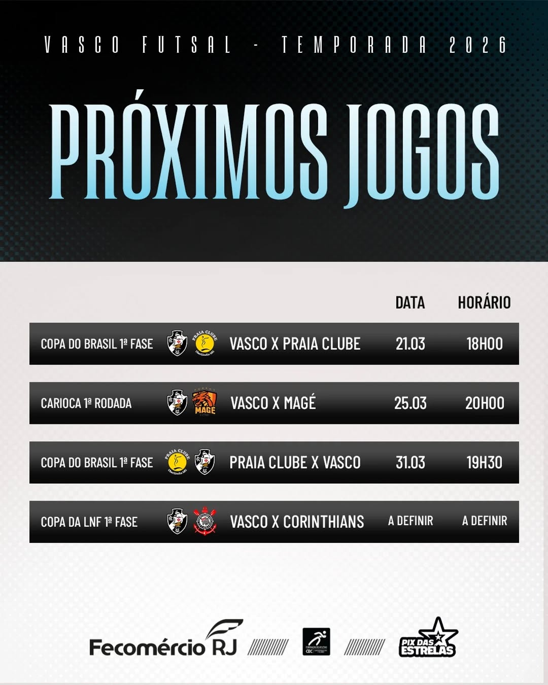 Futsal: Vasco divulga seus calendários de jogos para o mês de março