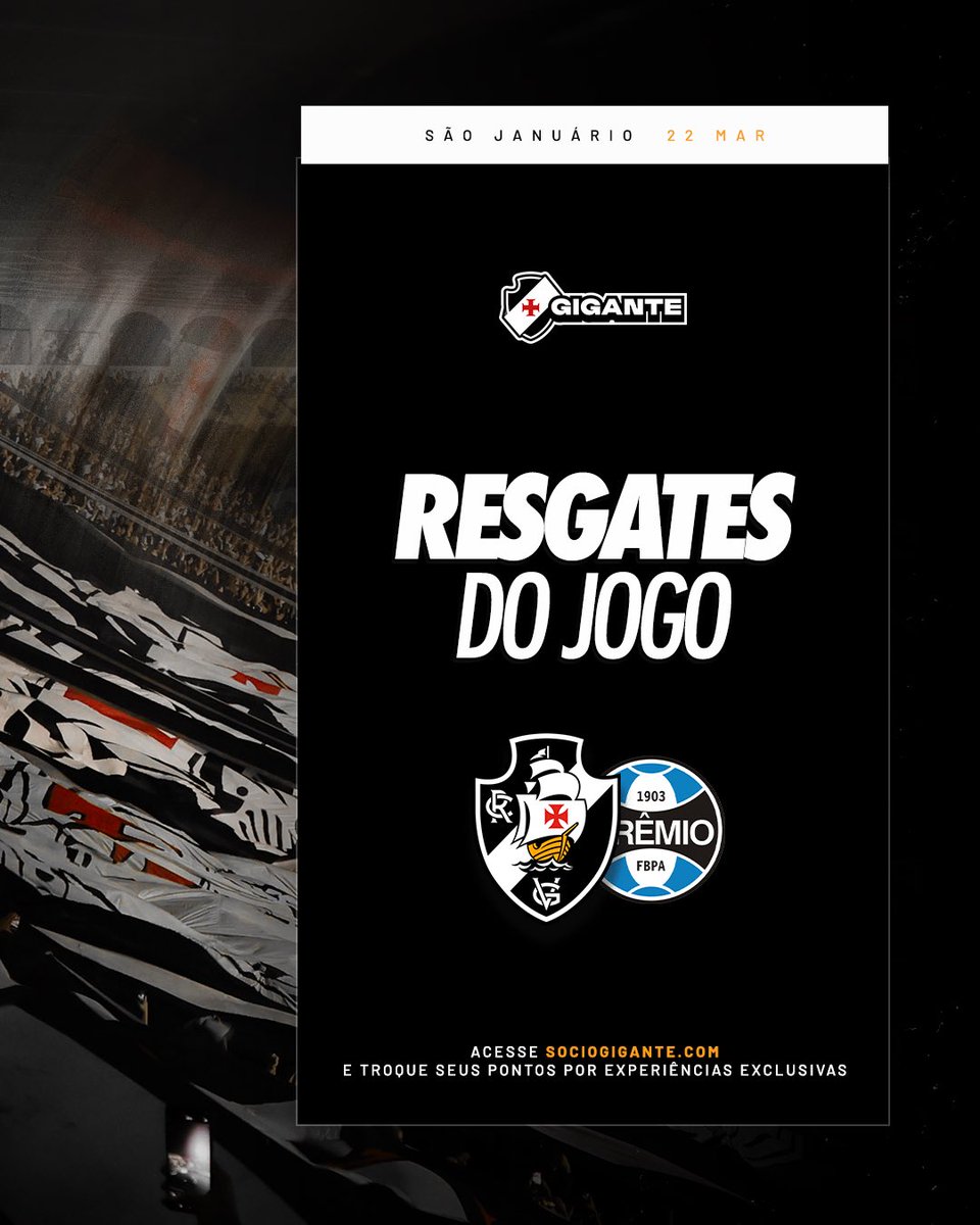 Os resgates de experiências para VASCO x Grêmio estarão disponíveis a partir de HOJE (20/03), às 16h.