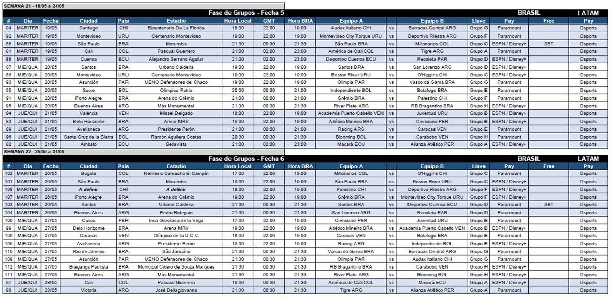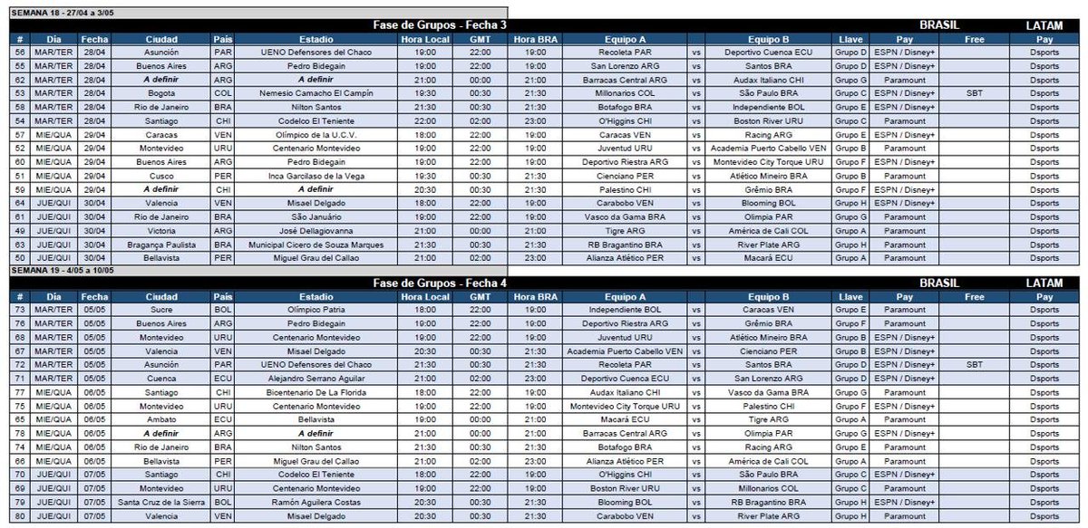 Na tabela oficial da competição, todos os seis jogos do Vasco nessa fase serão transmitidos apenas pela Paramount.