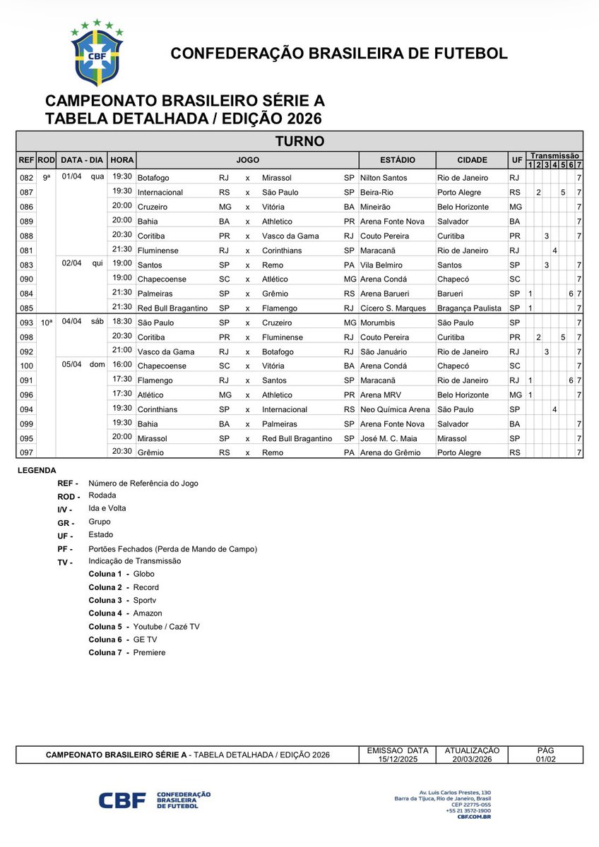 20/03/26 - CBF discutirá com clubes criação de liga única no futebol brasileiro