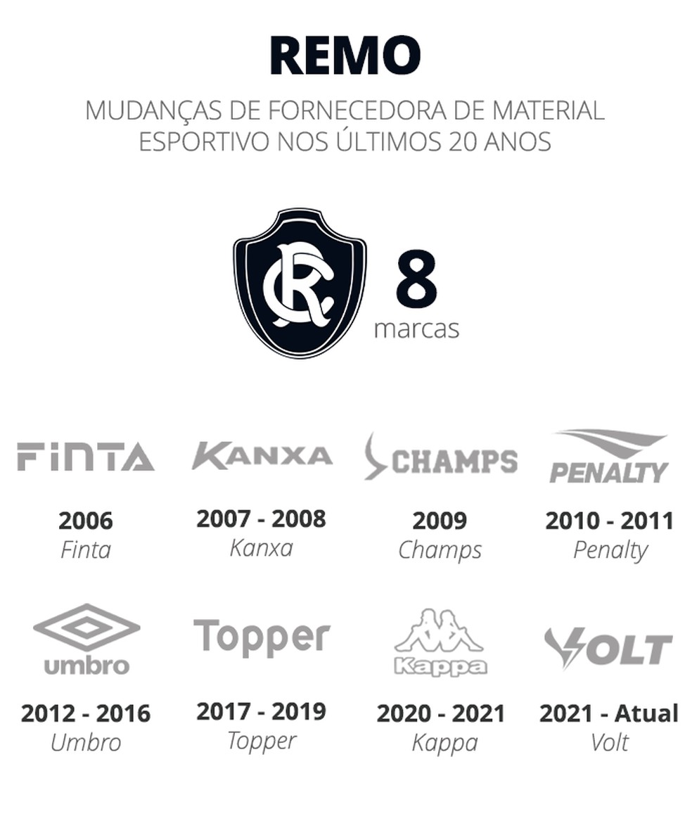 Veja as marcas usadas pelos clubes nos últimos 20 anos