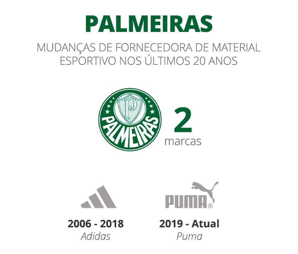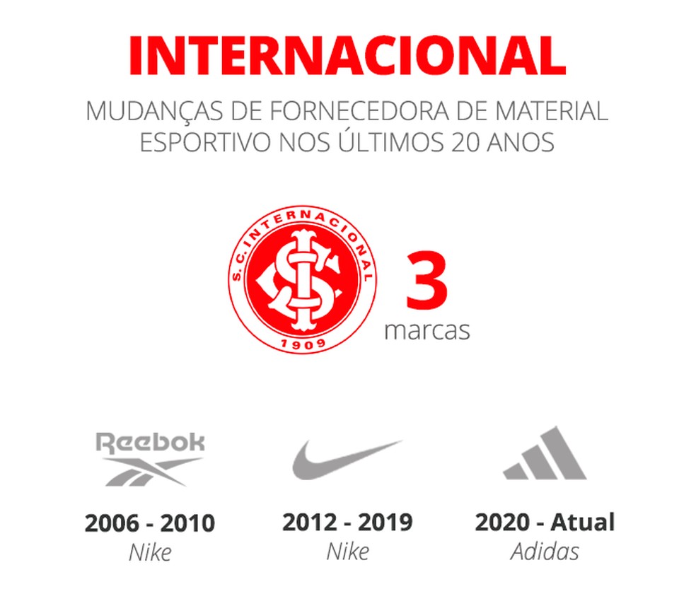 Por outro lado, dois times chamam atenção pela longevidade da parceria. Corinthians e Nike têm ligação desde 2003 e, no fim do ano passado, renovaram contrato por mais 10 temporadas, até 2036.