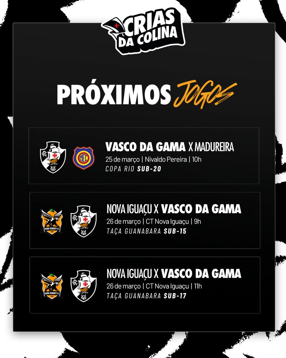 🗓️ Confira os jogos da semana dos #CriasDaColina!