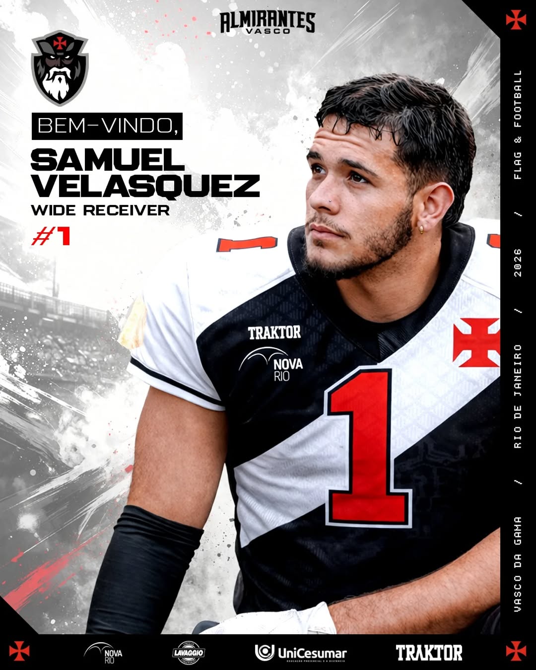 Futebol Americano: Vasco Almirantes anuncia o wide receiver Samuel Velasquez