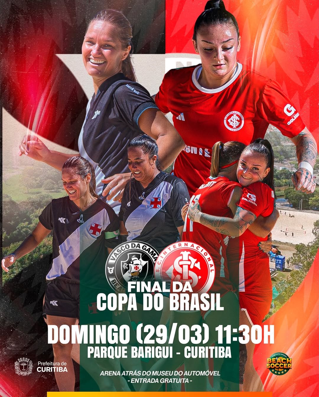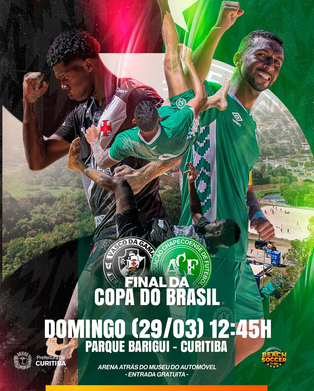 Neste domingo no Parque Barigui em Curitiba-PR a grande final da Copa do Brasil de Beach Soccer. Entrada gratuita.