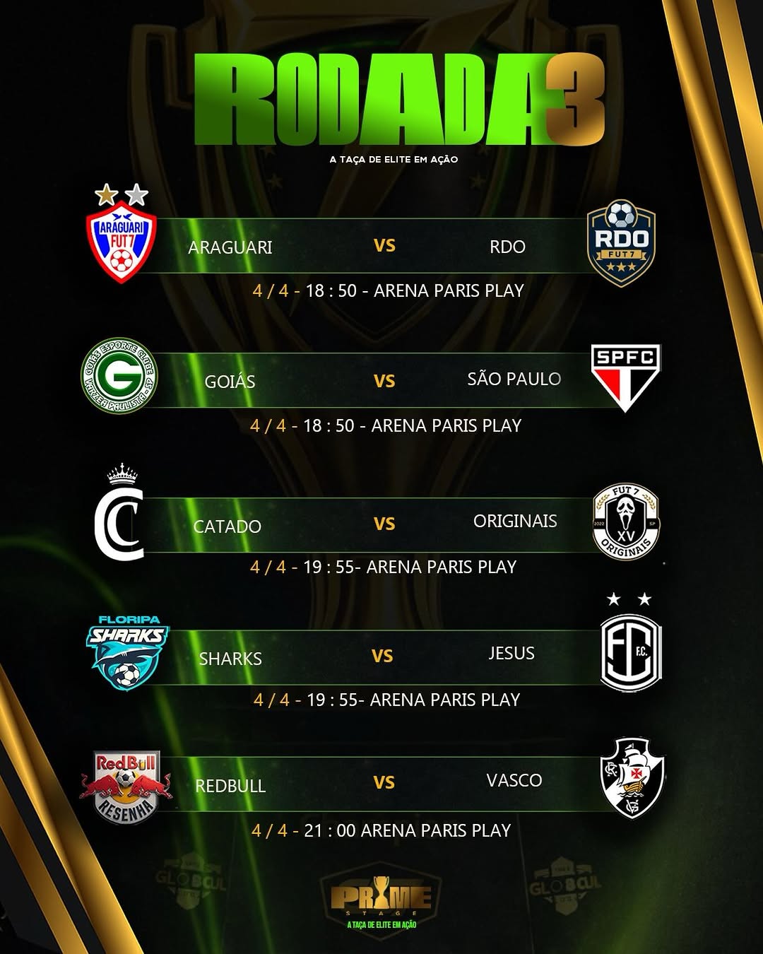 Confira os confrontos que fecham a fase de rodadas da Prime Stage.