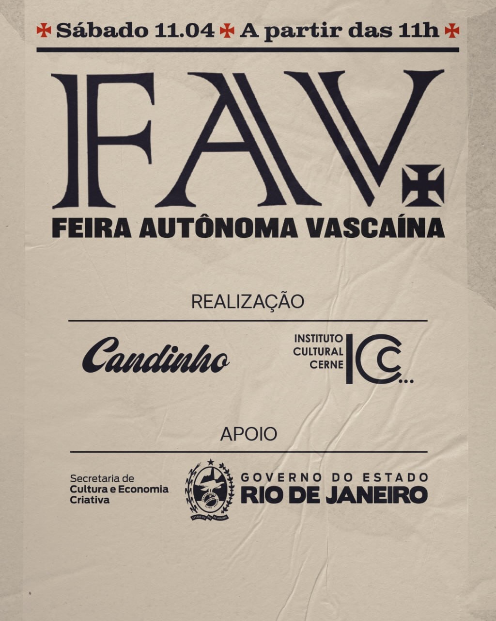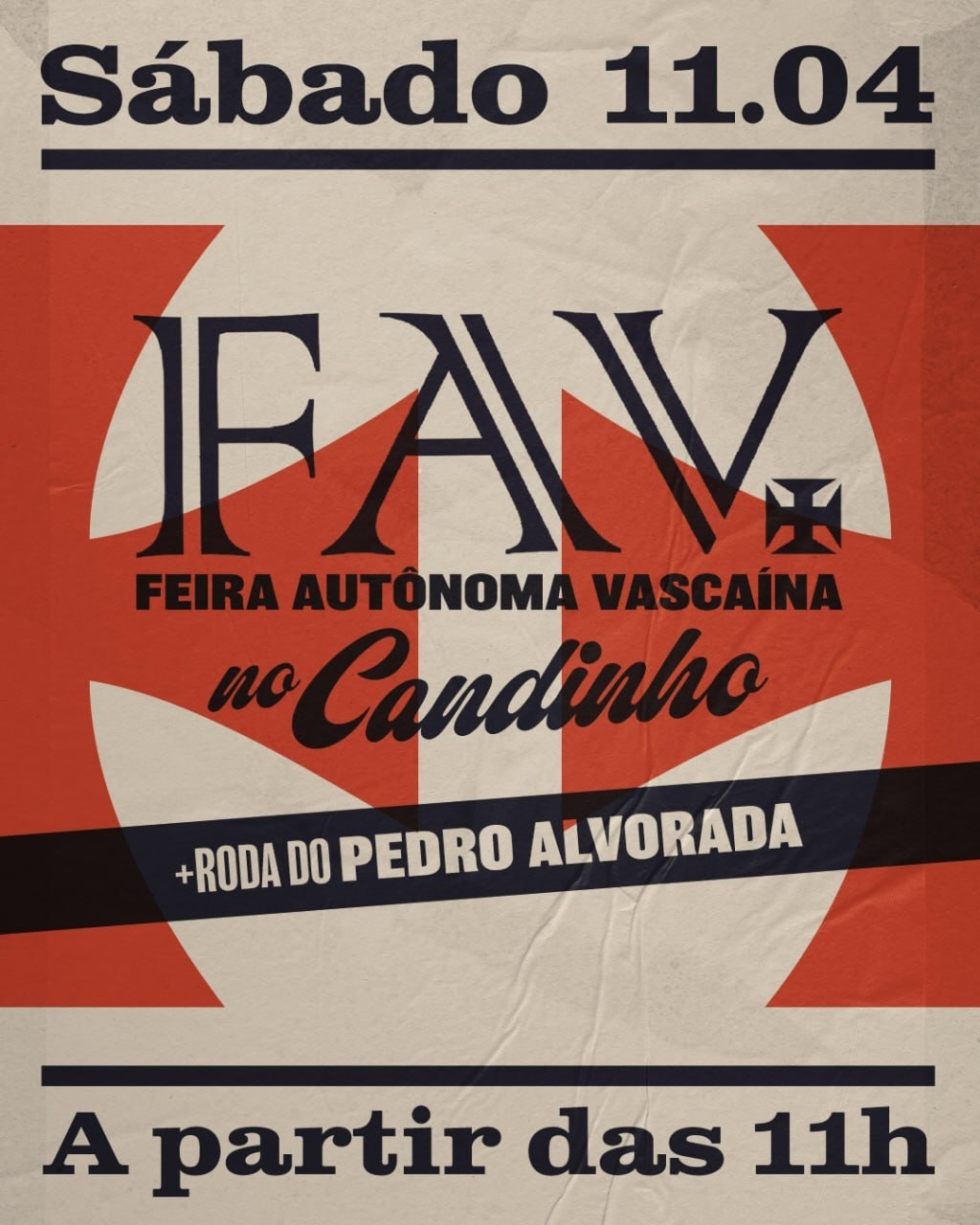Abril segue daquele jeito: Neste sábado, 11/04, a partir das 11h, o Candinho recebe a FAV — Feira Autônoma Vascaína (@feira.autonoma.vascaina), reunindo arte, economia criativa e a força da comunidade vascaína ocupando o espaço.