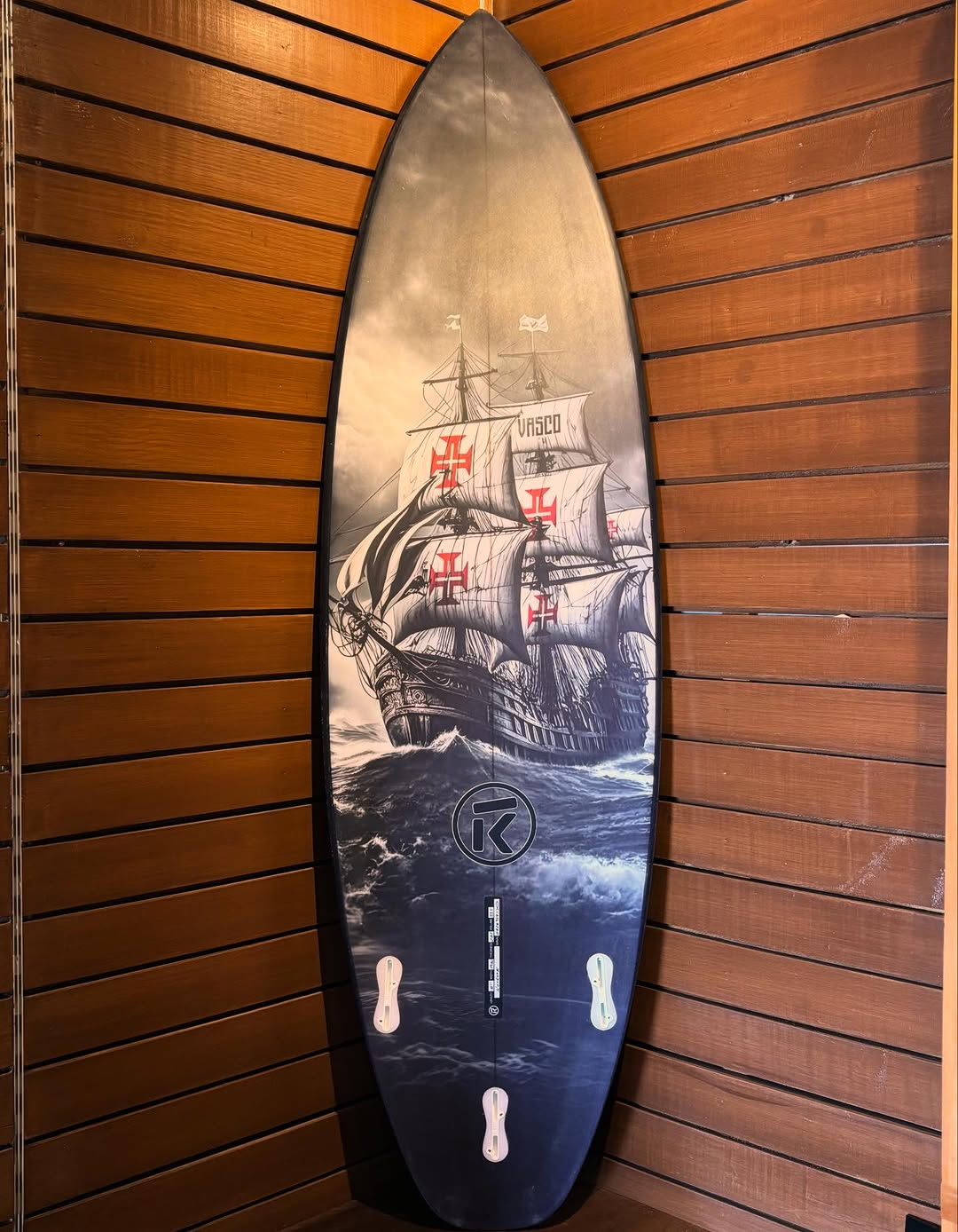 Veja prancha de surfe com decoração inspirada no Vasco