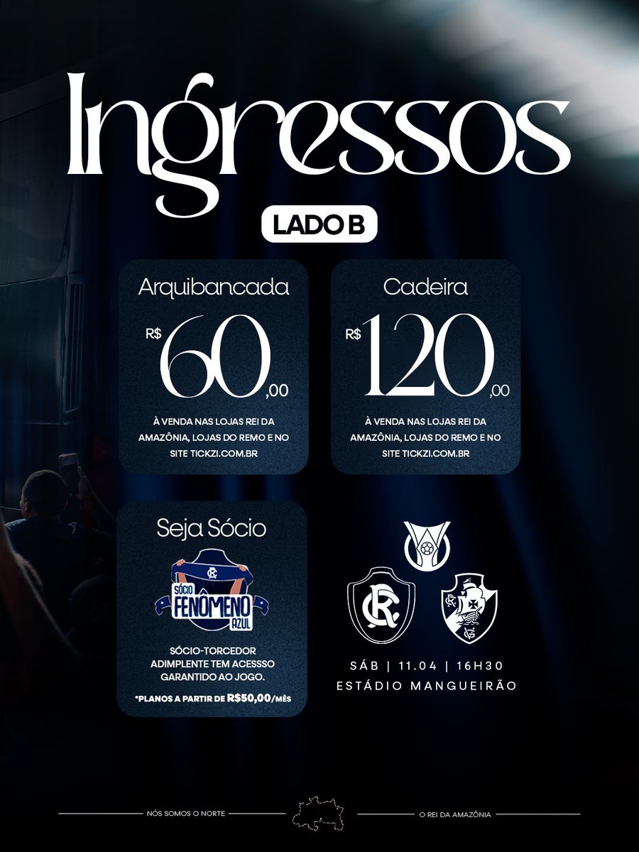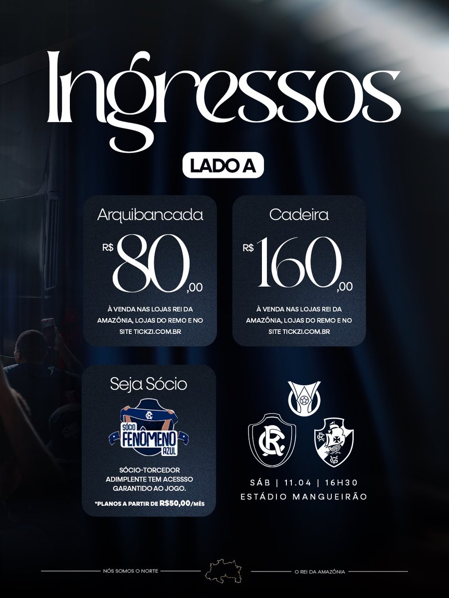 Os ingressos para a partida entre Clube do Remo x Vasco, pelo Brasileirão, já estão disponíveis! 🦁💙