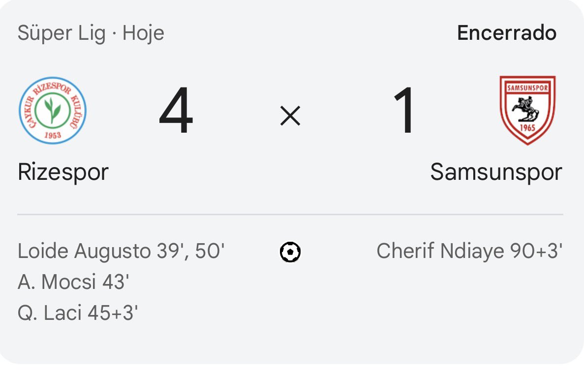 Loide Augusto, Jogador do Vasco, emprestado para o Rizespor-TUR, marca duas vezes na vitória sobre o Samsunspor.
