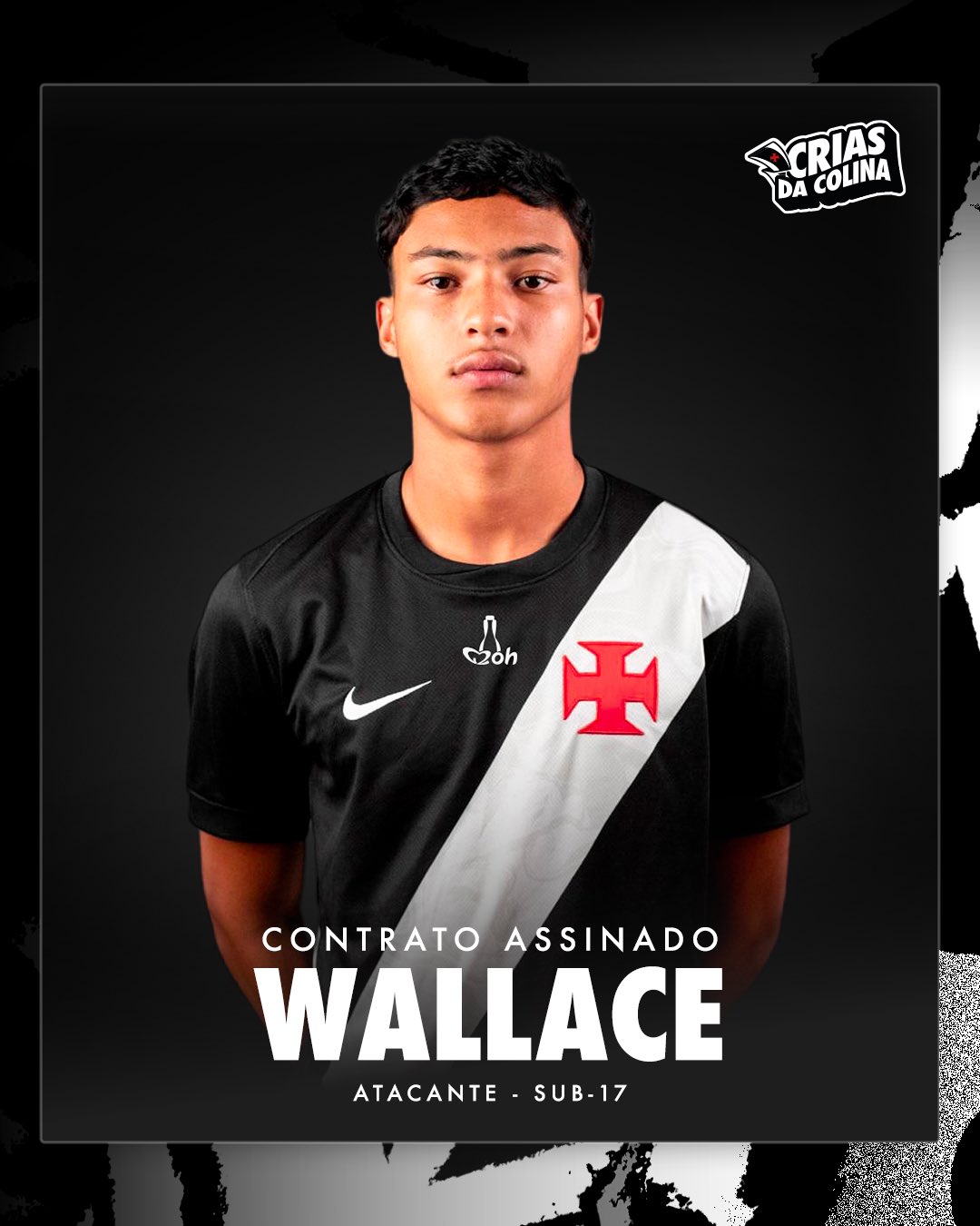 O Vasco da Gama oficializou a assinatura de contrato de Wallace, atacante que passa a integrar a equipe Sub-17 do clube. O vínculo do jogador junto ao Cruzmaltino está firmado por meio de um acordo de empréstimo com o Nova Iguaçu, com duração até março de 2027.