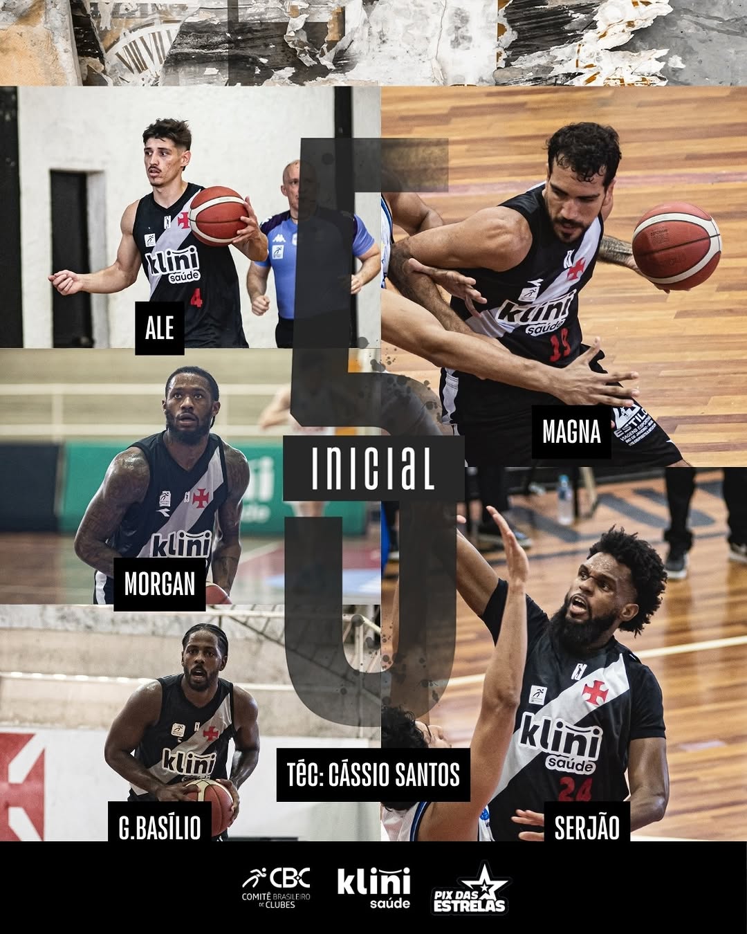 Basquete: Confira o quinteto inicial do Vasco para o jogo contra o Cruzeiro