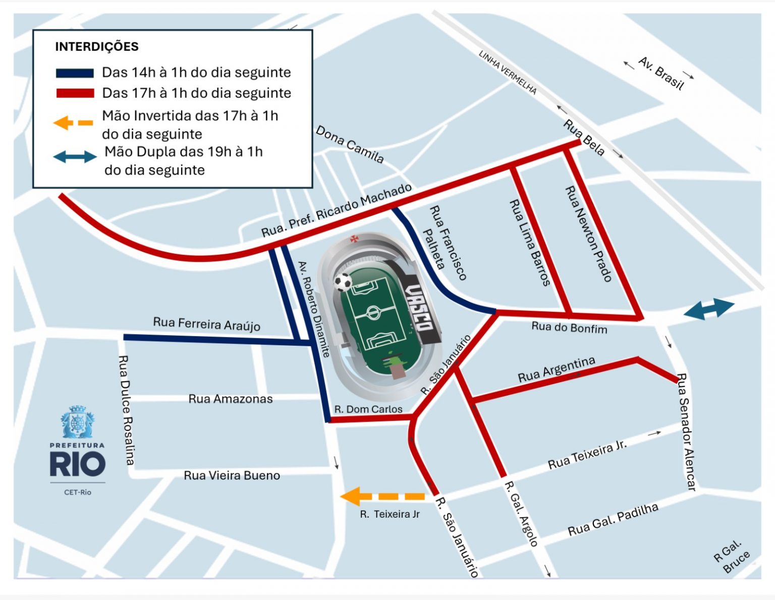 CET-Rio detalha interdições no entorno de São Januário para Vasco x Audax Italiano