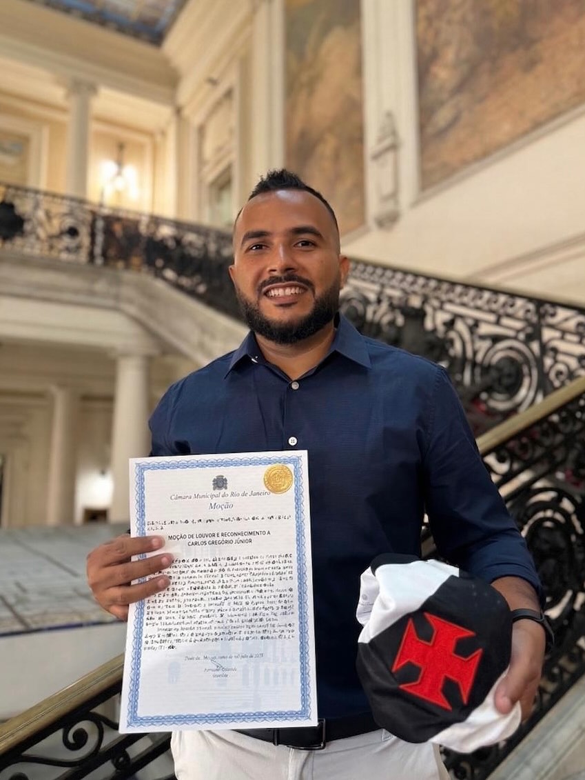 Receber uma Moção de Louvor e Reconhecimento pelo trabalho que desenvolvo na comunicação do Vasco da Gama, em um dia tão simbólico para o clube, em que se celebra a trajetória do #MaiorDeTodos, é algo muito gratificante e que me emociona profundamente.