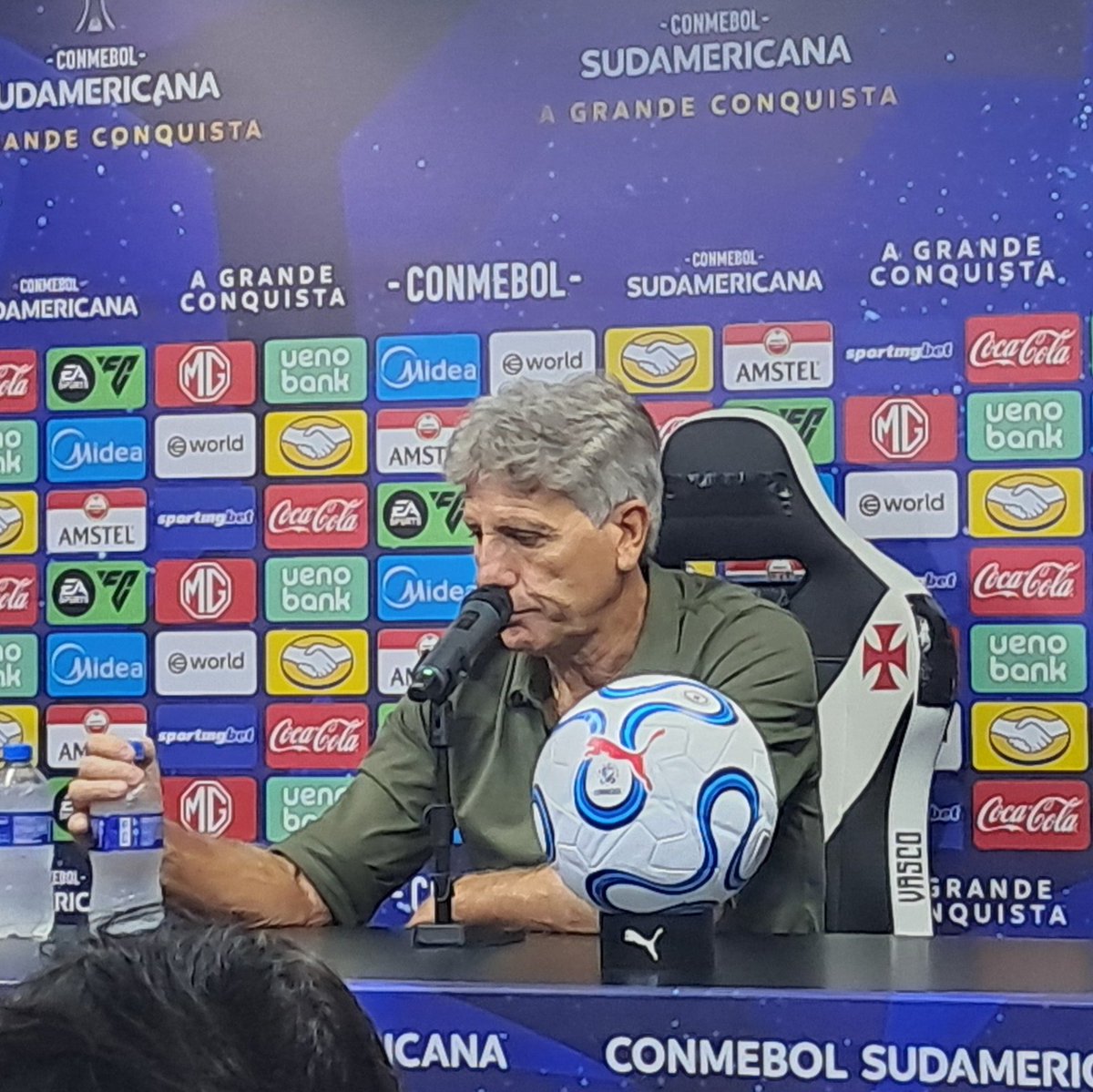 Renato Gaúcho acaba de contar que, após o jogo, Pedrinho foi ao vestiário e, junto a ele, cobrou os jogadores pelo desempenho no jogo contra o Audax Italiano.