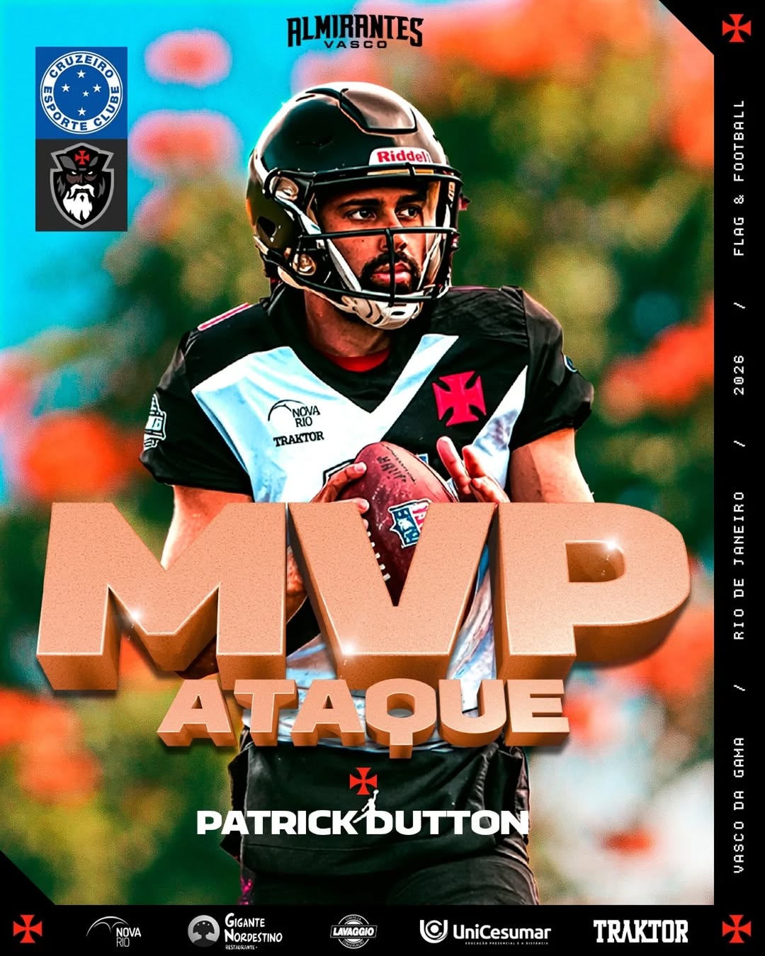 Futebol Americano: Vasco teve os MVPs de ataque e de defesa no jogo contra o Cruzeiro