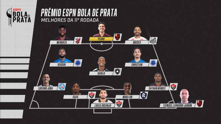 A seleção do Bola de Prata da 11ª rodada ficou assim: Lucas Arcanjo (Vitória), Nathan Mendes (Vitória), Cacá (Vitória), Marllon (Remo) e Luciano Juba (Bahia); Danilo (Botafogo), Gerson (Cruzeiro) e Christian (Cruzeiro); Pedro (Flamengo), Mendoza (Athletico-PR) e Moisés (Santos). Técnico: Leonardo Jardim (Flamengo).
