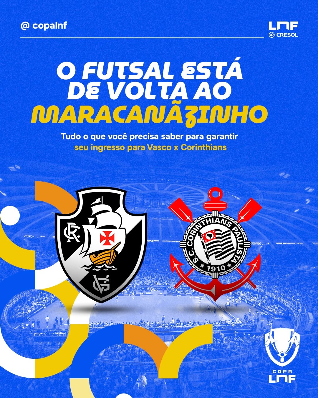 Futsal: Informações sobre ingressos para Vasco x Corinthians, no dia 25/04, no Maracanãzinho, pela Copa LNF