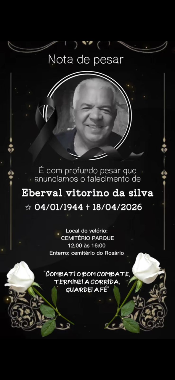 Eberval está sendo velado no Cemitério do Parque, e seu sepultamento será neste domingo às 16 horas no Cemitério do Rosário, na cidade de Nova Lima.