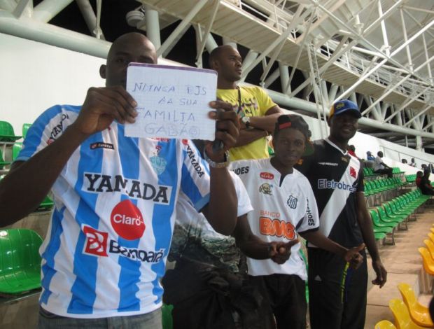 Três torcedores surpreenderam a imprensa brasileira ao surgirem na arquibancada do Estádio L´Amitié, em Libreville, com as camisas de clubes brasileiros. Santos, Paysandu e Vasco deram o ar da graça na arena na capital do Gabão. Um deles, inclusive, afirmou ter família no Brasil e pediu para um brasileiro escrever uma mensagem para o país tupiniquim.