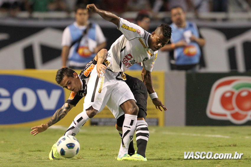 O segundo tempo começou como se ainda fosse o primeiro: Botafogo perdido e Vasco soberano. De tanto insistir, não demorou muito para o Cruz-Maltino ampliar. Éder Luis já tinha perdido outra boa chance quando Dedé voltou a brilhar no ataque. Jefferson acabara de realizar um milagre em uma finalização de canela do zagueiro Renato Silva, quando o ídolo da torcida vascaína roubou a bola, driblou Elkeson e tocou para Rômulo. O volante abriu para Fellipe Bastos na esquerda e o cruzamento encontrou a cabeça de Dedé, que ainda aproveitou o erro de marcação de Cortêz para colocar 2 a 0 no placar. Com os dois gols sobre Universitário-PER, foi o terceiro gol do zagueiro-artilheiro na semana.