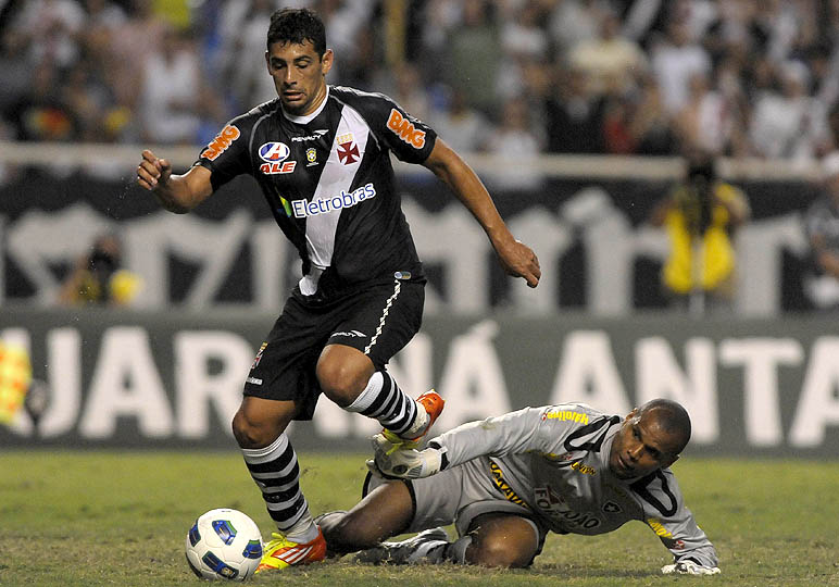 Depois da visita do técnico Ricardo Gomes à concentração vascaína, na tarde do último sábado, Cristóvão surpreendeu na escalação. Com Juninho Pernambucano, Élton e Alecsandro no banco, o interino repetiu a fórmula que deu certo na vitória sobre o Bahia: meio-campo recheado de volantes e ataque rápido com Diego Souza e Éder Luis. Os primeiro minutos da partida, porém, deram a impressão de que a opção vascaína tinha sido equivocada. Com calma, passes rápidos e seu time titular completo, o Botafogo começou sufocando e teve duas boas chances para abrir o placar com Herrera e Elkeson antes mesmo dos 10 minutos.