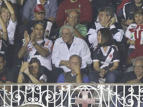 Devidamente uniformizados com camisas do Vasco, o casal acompanhou a partida ao lado do presidente do clube, Roberto Dinamite. Um seguidor de William Bonner no Twitter ainda brincou com o fato do jornalista estar no estádio.