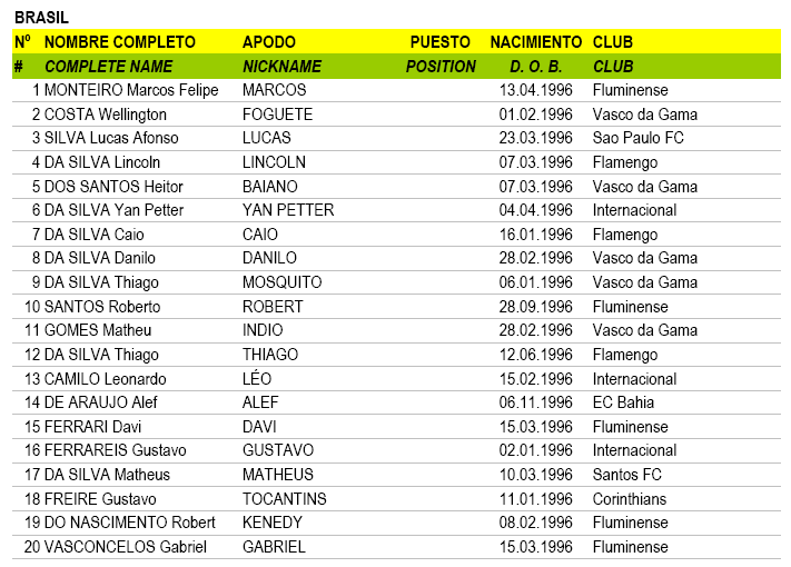Matheus Gomes* 5'/1ºT - Brasil 1x0