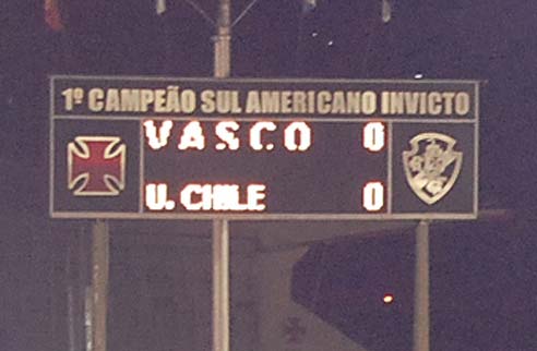 Durante cerca de cinco minutos, o placar eletrônico do estádio de São Januário, no Rio de Janeiro, cometeu um erro grave de gramática na partida do Vasco contra o Universidad de Chile, pela Copa Sul-Americana.